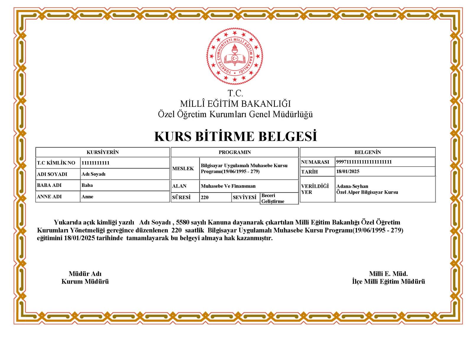 MEB Onaylı Bilgisayarlı Muhasebe Kursu Sertifikası